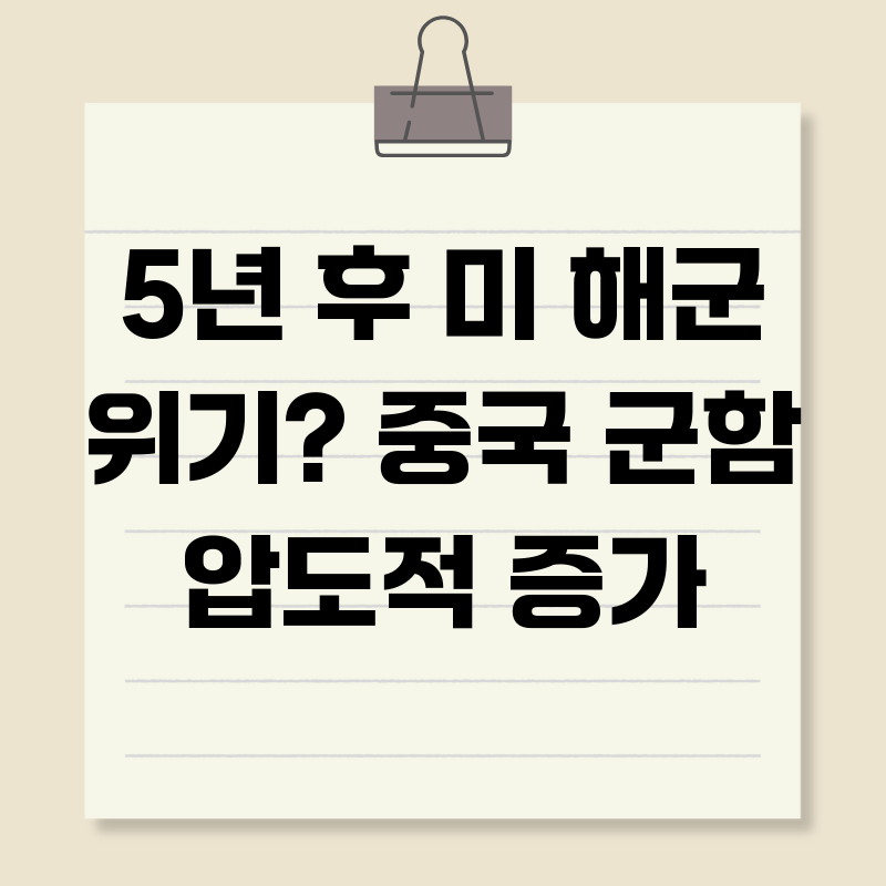 최근 몇 년간 중국 해군의 성장은 그야말로 폭발적입니다. 단순히 함정 건조 속도만 빠른 것이 아니라, 항공모함, 구축함, 잠수함 등 다양한 전력에서 질적인 성장을 이루고 있다는 점이 더욱 위협적입니다. 미국의 군사 전문가들은 이러한 추세가 지속될 경우, 5년 안에 미 해군이 중국 해군에 의해 '압도될' 수 있다는 경고를 내놓고 있습니다. 하지만 '압도'라는 표현은 다소 자극적일 수 있습니다. 우리는 좀 더 객관적인 데이터를 통해 현실을 파악해야 합니다.
