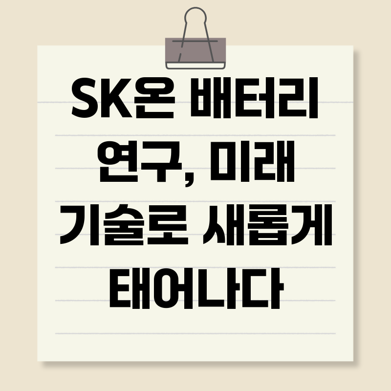 SK온의 배터리 기술이 앞으로 어떤 놀라운 변화를 가져올지 기대됩니다. 여러분은 SK온의 미래에 대해 어떻게 생각하시나요? 댓글로 여러분의 의견을 공유해주세요.