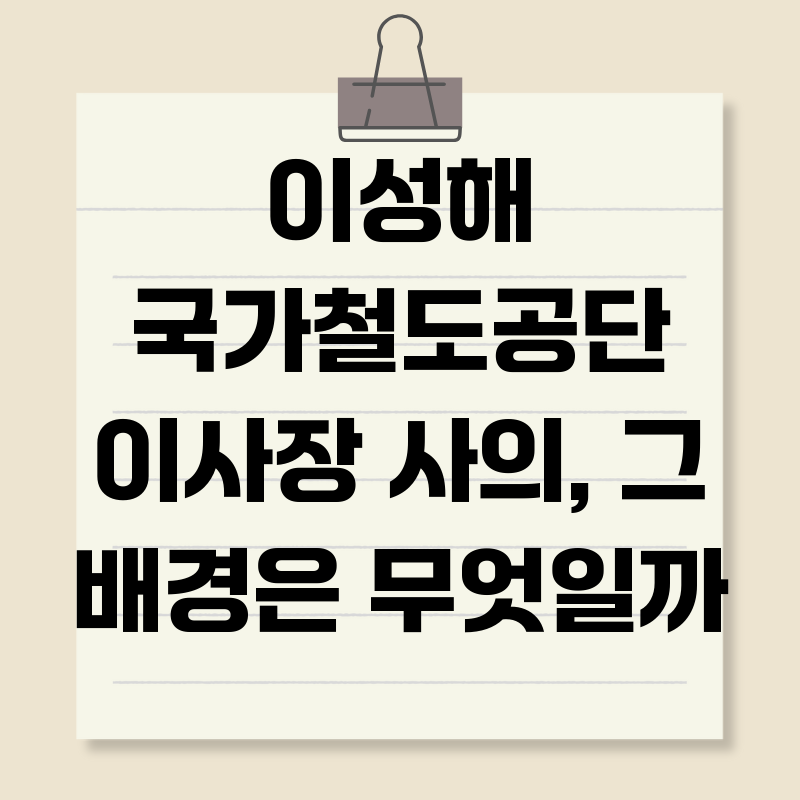 이성해 철도공단 이사장 사의, 숨겨진 배경과 철도 정책 전망