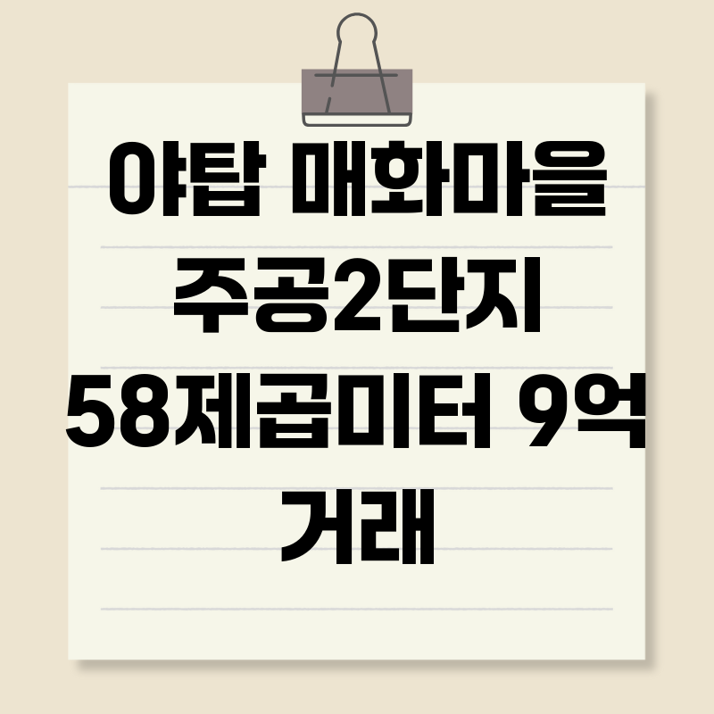 | 매화마을 주공2단지 58㎡ 실거래가 | 8억 5천만원 | 9억 원 | +5천만원 |