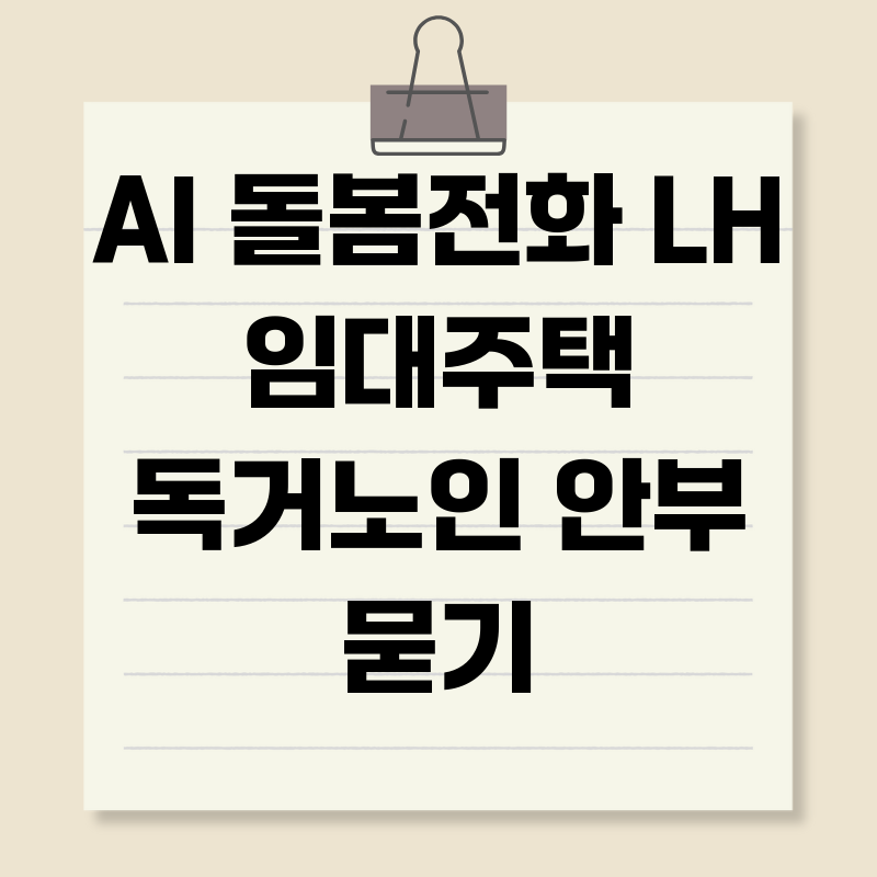 AI 안부, LH 임대주택 어르신들의 따뜻한 동반자?혼자 사는 어르신들의 고독과 안전 문제는 우리 사회가 해결해야 할 시급한 과제입니다. 특히 LH 임대주택에 거주하는 독거노인들은 경제적인 어려움과 사회적 고립이라는 이중고를 겪는 경우가 많습니다. 최근 LH가 도입한 AI 돌봄 전화 서비스는 이러한 문제를 해결하기 위한 혁신적인 시도로 주목받고 있습니다. 하지만 기술이 아무리 발전해도 인간적인 교감과 정서적 지원을 완전히 대체할 수 있을까요? AI 돌봄 전화가 어르신들의 삶에 실질적인 도움이 될 수 있을지 심층적으로 분석해보고, 개선해야 할 점은 없는지 함께 고민해 보겠습니다.AI 돌봄 전화, LH 임대주택에 불어온 따뜻한 바람?LH는 인공지능 기술을 활용하여 임대주택에 거주하는 독거노인들의 안부를 확인..