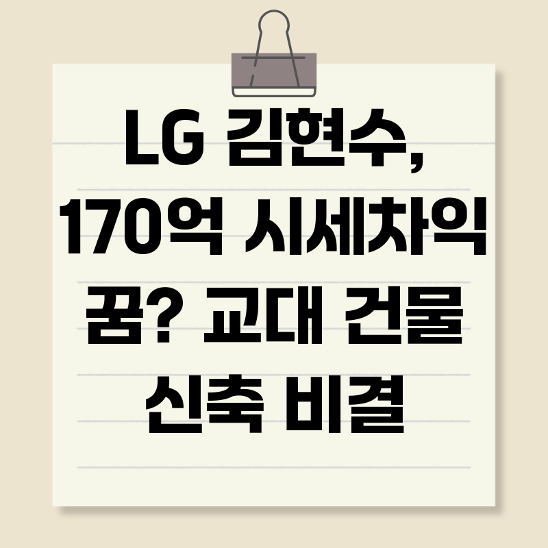 김현수 건물주 변신, 170억 시세차익? 부동산 투자 비결 분석LG 트윈스의 간판타자 김현수 선수가 서울 서초구 교대역 인근에 신축한 건물이 화제입니다. 단순한 스포츠 스타의 부동산 투자 스토리를 넘어, 김현수 선수의 사례는 성공적인 부동산 투자의 핵심 요소를 짚어볼 수 있는 좋은 기회를 제공합니다. 과연 김현수 선수는 어떻게 이 건물을 신축하게 되었으며, 170억 원이라는 막대한 시세차익을 기대할 수 있게 된 배경은 무엇일까요? 본 글에서는 김현수 선수 건물 신축 사례를 심층 분석하여 부동산 투자 성공 전략과 주의점을 제시하고자 합니다.김현수 선수, 교대역 건물 신축 배경김현수 선수는 2018년, 교대역 인근의 노후 건물을 매입했습니다. 당시 매입 가격은 3.3㎡당 4,000만 원 선으로, 총 47억 ..