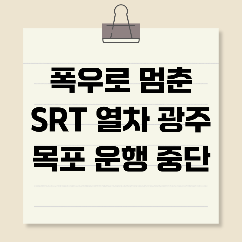 광주·목포 SRT 운행 중단: 폭우 피해와 안전 대책최근 기록적인 폭우로 인해 SRT 열차의 광주-목포 구간 운행이 중단되는 초유의 사태가 발생했습니다. 단순히 불편을 넘어, 기후 변화 시대에 우리가 마주한 철도 안전의 현주소를 적나라하게 보여주는 사건입니다. 이번 사태를 통해 우리는 무엇을 배우고, 앞으로 어떤 대비를 해야 할까요? 폭우로 인한 SRT 운행 중단 사태를 심층적으로 분석하고, 그 원인과 영향, 그리고 해결 방안까지 모색해 보겠습니다.폭우로 인한 SRT 운행 중단: 배경과 현황지난 며칠간, 전국적으로 기록적인 폭우가 쏟아지면서 곳곳에서 피해가 속출하고 있습니다. 특히, 호남 지역은 집중 호우의 직격탄을 맞아 인명 피해는 물론, 주요 기반 시설까지 마비되는 상황에 이르렀습니다. 이러한 상황 ..