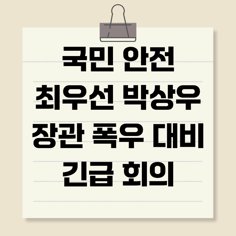 폭우 대비 총력! 박상우 장관 긴급회의, 국민 안전 지킨다최근 기후 변화로 인해 예측 불가능한 폭우가 잦아지면서 국민들의 불안감이 커지고 있습니다. 이러한 상황 속에서 박상우 국토교통부 장관은 국민 안전을 최우선으로 폭우 대비 긴급 회의를 주재하며 선제적인 대응을 강조했습니다. 단순한 회의 개최 소식을 넘어, 이번 긴급 회의가 갖는 의미와 앞으로 우리가 주목해야 할 점들을 심층적으로 분석해보고자 합니다.긴급 회의 개최 배경: 심각해지는 기후 위기와 안전 불감증최근 몇 년간 우리는 기록적인 폭우로 인한 심각한 피해를 경험했습니다. 2020년 여름의 긴 장마, 2022년 수도권 집중 호우, 그리고 2023년 오송 지하차도 참사까지, 안타까운 인명 피해와 재산 손실이 끊이지 않았습니다. 이러한 상황은 더 이상..