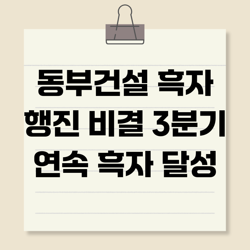 동부건설, 흑자비결 심층분석: 건설 불황 속 빛나는 생존전략최근 건설업계는 금리 인상, 원자재 가격 상승, 부동산 경기 침체 등 삼중고를 겪으며 어려움을 겪고 있습니다. 이러한 어려운 상황 속에서도 동부건설이 3분기 연속 흑자를 달성하며 놀라운 성과를 보여주고 있습니다. 단순한 운이 좋았던 걸까요? 아니면 다른 건설사들과는 다른 특별한 전략이 있었던 걸까요? 본 글에서는 동부건설의 흑자 행진 배경을 심층적으로 분석하고, 그 성공 요인을 파헤쳐 보고자 합니다.1. 건설 경기 침체 속 빛나는 동부건설의 흑자, 그 의미는?국내 건설 경기는 현재 매우 어려운 상황입니다. 한국건설산업연구원의 보고서에 따르면, 2023년 건설 수주액은 전년 대비 15% 이상 감소할 것으로 예상되며, 특히 주택 건설 부문의 부진이 ..