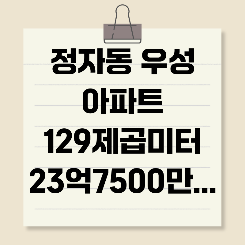 정자동 우성 아파트 129제곱미터 23억7500만원 거래 소식