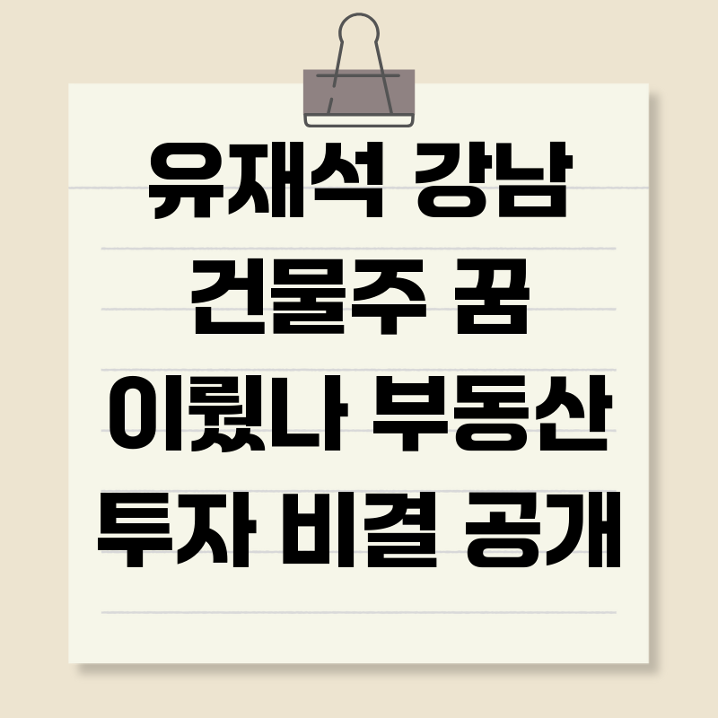 유재석 부동산 투자 성공 비결: 5가지 인사이트 분석국민 MC 유재석 씨가 최근 강남 건물주 대열에 합류했다는 소식이 들려오면서, 그의 부동산 투자 비결에 대한 관심이 뜨겁습니다. 단순히 '유명인이 건물을 샀다'는 가십을 넘어, 유재석 씨의 투자 행보는 일반인도 참고할 만한 가치 투자 전략과 성공적인 자산 관리의 교훈을 담고 있습니다. 본 글에서는 유재석 씨의 부동산 투자 사례를 심층 분석하여, 성공적인 투자의 핵심 요소를 짚어보고, 부동산 시장의 미래 전망과 함께 일반 투자자들이 얻을 수 있는 실질적인 인사이트를 제공하고자 합니다.1. 유재석 부동산 투자, 단순한 '성공' 이상의 의미유재석 씨의 건물 매입은 단순히 개인의 자산 증식을 넘어, 연예인 부동산 투자에 대한 대중의 관심을 환기하고, 건전한 투..