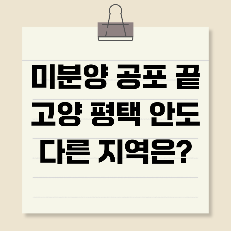 미분양 탈출? 고양·평택은 웃고, OO시는 울상인 이유최근 부동산 시장에서 미분양 문제는 여전히 뜨거운 감자입니다. 전국적으로 미분양 물량이 감소 추세에 있다고는 하지만, 지역별 편차가 극명하게 나타나면서 희비가 엇갈리고 있습니다. 특히 고양시와 평택시는 미분양 '공포'에서 벗어나 안도하는 분위기이지만, 다른 지역에서는 여전히 어려움을 겪고 있다는 소식이 들려옵니다. 왜 어떤 지역은 미분양에서 벗어나고, 어떤 지역은 그렇지 못할까요?미분양 현황, 전국적인 감소세 속 숨겨진 함정국토교통부에 따르면, 2024년 5월 말 기준 전국 미분양 주택은 6만 8865가구로 집계되었습니다. 이는 전월(7만 1365가구) 대비 3.5% 감소한 수치이며, 3개월 연속 감소세를 이어가고 있습니다. 겉으로 보기에는 미분양 문..