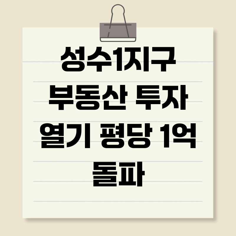 성수동 부동산, 평당 1억 시대: 투자해도 괜찮을까?한강변을 따라 고급 아파트들이 즐비한 성수동. 최근 성수1지구 재개발 사업이 속도를 내면서, 이 지역 부동산 시장이 뜨겁게 달아오르고 있습니다. 평당 1억 원을 돌파했다는 소식은 놀라움을 넘어, 투자자들의 마음을 더욱 흔들고 있습니다. 하지만 과연 지금 뛰어드는 것이 현명한 선택일까요? 무턱대고 투자했다가는 낭패를 볼 수도 있습니다. 오늘은 성수1지구 부동산 투자 열풍의 배경과 전망, 그리고 투자 시 유의해야 할 점들을 심층적으로 분석해 보겠습니다.성수1지구, 왜 이렇게 뜨거울까?성수1지구의 인기는 단순히 '강남 접근성이 좋은 한강변'이라는 피상적인 이유만으로는 설명하기 어렵습니다. 그 이면에는 몇 가지 복합적인 요인이 작용하고 있습니다. 먼저, 서울시..