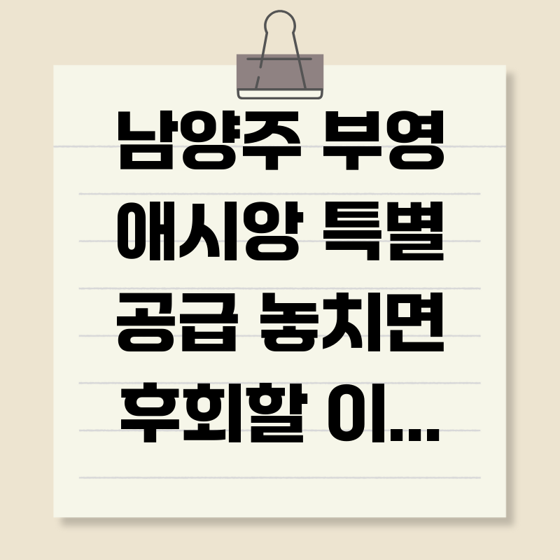 남양주 부영 애시앙 특별 공급 놓치면 후회할 이유 3가지