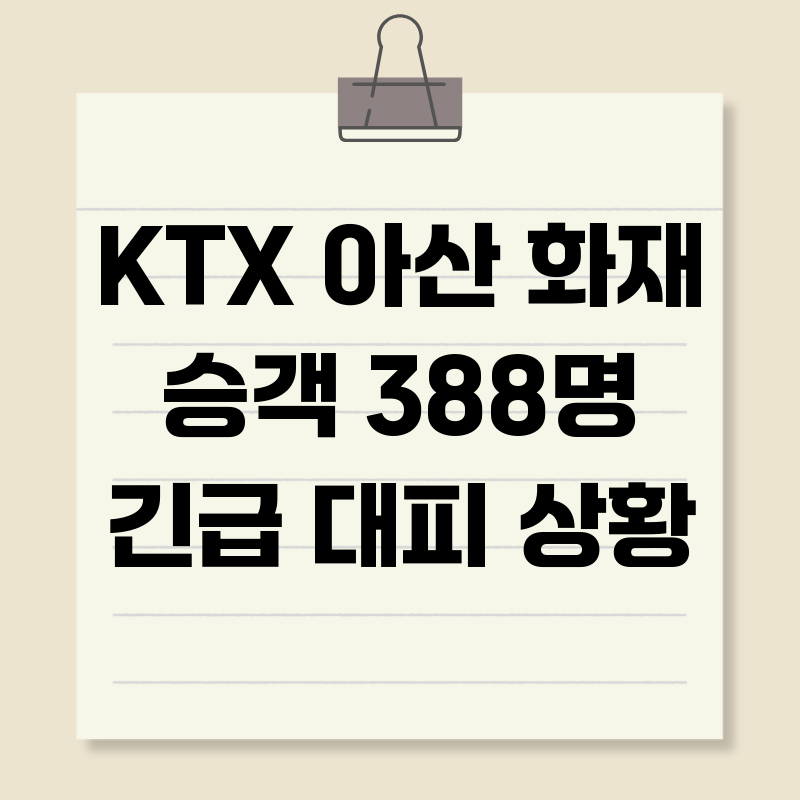 KTX 아산역 화재, 388명 대피! 원인과 교훈오늘 KTX 아산역에서 발생한 화재 소식은 많은 이들을 놀라게 했습니다. 388명의 승객이 긴급 대피하는 소동이 벌어지면서, 자칫 큰 인명 피해로 이어질 뻔한 아찔한 순간이었는데요. 단순한 사고 소식을 넘어, 우리는 이번 화재를 통해 무엇을 배우고, 어떻게 대비해야 할까요? 이 글에서는 KTX 아산역 화재의 전말을 살펴보고, 유사시 대처 요령과 함께 철도 안전 시스템의 개선 방향을 모색해 보겠습니다.KTX 아산역 화재 발생: 긴박했던 당시 상황오늘(2024년 5월 16일) 오전, KTX 열차가 아산역 구내에서 원인 미상의 화재로 멈춰서는 사고가 발생했습니다. 화재는 열차 하부에서 시작된 것으로 추정되며, 다행히 신속한 대응 덕분에 큰 인명 피해는 없었습니다..