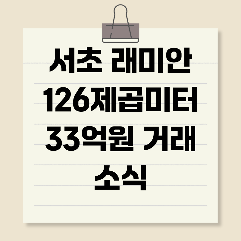 서초 래미안 33억 거래, 부동산 시장에 던지는 의미최근 서초 래미안 아파트 126제곱미터가 33억원에 거래되었다는 소식은 강남 부동산 시장의 건재함을 다시 한번 확인시켜주는 듯합니다. 하지만 단순한 거래 금액 이상의 의미를 내포하고 있다는 점에 주목해야 합니다. 과연 이 거래는 단순한 가격 회복의 신호탄일까요, 아니면 새로운 상승장의 시작을 알리는 신호일까요? 혹은 다른 숨겨진 요인이 작용하고 있는 것일까요? 이번 블로그에서는 이 거래를 심층적으로 분석하고, 부동산 시장에 미치는 영향과 앞으로의 전망에 대해 자세히 살펴보겠습니다.서초 래미안 33억 거래, 단순한 회복 이상의 의미?서초 래미안의 33억원 거래는 최근 부동산 시장의 미묘한 변화를 반영합니다. 금리 인상, 경기 침체 우려 등 여러 악재 속에..