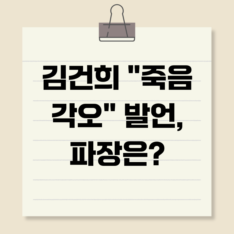 김건희 "죽음 각오" 발언, 그 이면에 숨겨진 진실은?최근 김건희 여사의 "제가 죽어야 남편 살 길이 열리지 않을까요?"라는 발언이 보도되면서 정계는 물론, 일반 대중들 사이에서도 큰 파장이 일고 있습니다. 단순한 감정 토로일까요, 아니면 복잡한 정치적 메시지가 숨겨져 있는 것일까요? 본 글에서는 해당 발언의 배경, 의미, 그리고 앞으로의 정국에 미칠 영향까지 심층적으로 분석해보고자 합니다. 단순한 뉴스 전달을 넘어, 숨겨진 맥락과 함의를 짚어보고, 독자 여러분께 깊이 있는 통찰력을 제공하는 데 초점을 맞추겠습니다.발언의 배경: 신평 변호사와의 만남, 그리고 '옥중 서신'이번 논란의 발단은 신평 변호사가 자신의 페이스북에 게재한 '김건희 여사와의 만남'이라는 제목의 글입니다. 신 변호사는 해당 글에서 김..