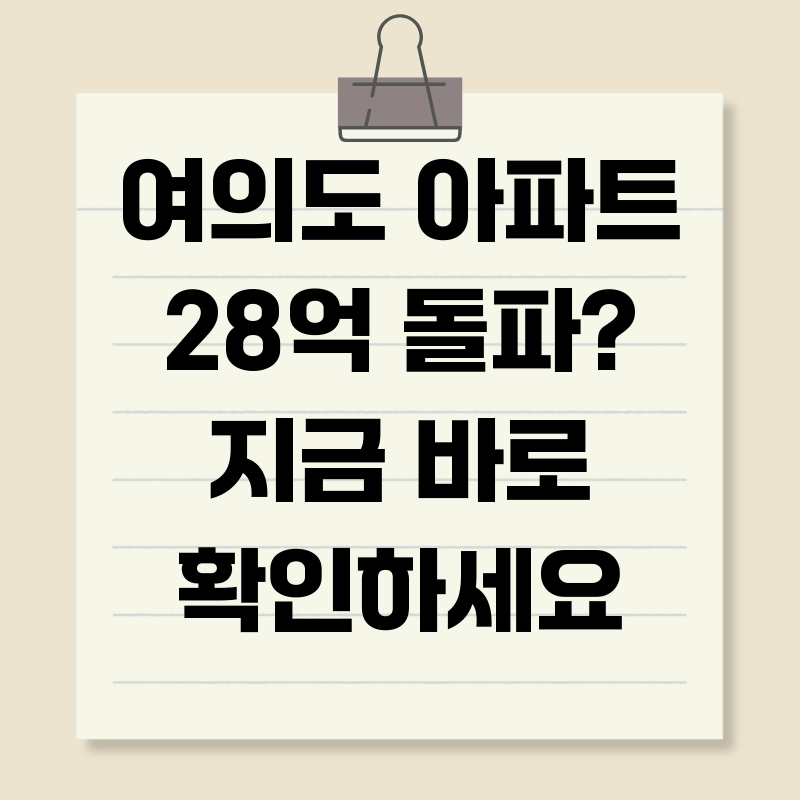 여의도 아파트 28억 돌파, 꺾이지 않는 이유와 투자 전략최근 여의도 아파트 가격이 심상치 않습니다. 28억 원을 돌파했다는 소식이 들려오면서, 부동산 시장에 다시 한번 뜨거운 감자가 된 듯합니다. 단순히 '가격이 올랐다'는 표면적인 사실 너머에는 복잡한 경제적, 사회적 요인들이 얽혀 있습니다. 이번 글에서는 여의도 아파트 가격 상승의 원인을 심층적으로 분석하고, 앞으로의 전망과 투자 전략에 대해 이야기해 보겠습니다.여의도 아파트, 왜 다시 주목받는가?여의도는 한때 서울의 대표적인 업무 지구였지만, 강남과 새로운 도심에 밀려 상대적으로 침체된 시기를 겪었습니다. 하지만 최근 몇 년 사이 재건축 기대감, 금융 중심지로서의 위상 강화, 그리고 뛰어난 입지 조건 덕분에 다시 한번 투자자들의 관심을 한 몸에 받..