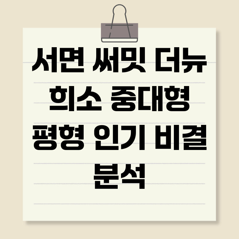 서면 써밋 더뉴, 중대형 평형 인기 비결 심층 분석최근 부산 분양 시장에서 서면 써밋 더뉴의 중대형 평형이 높은 인기를 얻고 있습니다. 단순히 넓은 집을 선호하는 트렌드를 넘어, 서면 써밋 더뉴만의 차별화된 가치가 수요자들의 마음을 사로잡고 있다는 분석입니다. 왜 서면 써밋 더뉴의 중대형 평형이 이토록 뜨거운 관심을 받고 있는지, 그 배경과 원인, 그리고 미래 전망까지 심층적으로 분석해 보겠습니다.부산 분양 시장, 중대형 평형의 귀환?과거 부산 분양 시장은 소형 평형 위주로 흘러갔습니다. 1~2인 가구 증가와 높은 집값 부담이 주요 원인이었죠. 하지만 최근 몇 년 사이, 중대형 평형에 대한 수요가 다시 살아나고 있습니다. 부동산 전문가들은 '삶의 질'을 중시하는 트렌드 변화와 함께, '넉넉한 공간'에 대..