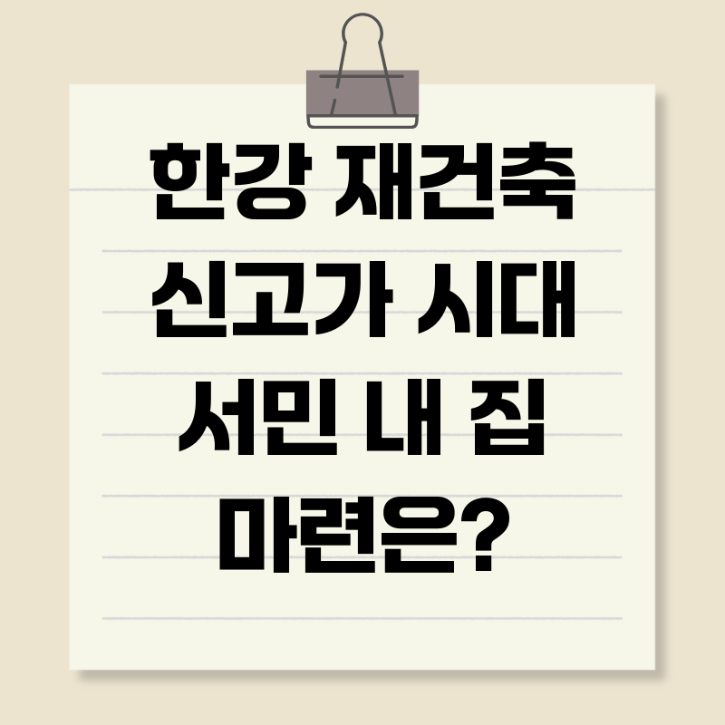 한강 재건축 랠리, 멈추지 않는 신고가? 서민 내 집 마련 해법은?최근 한강변 재건축 아파트들이 연일 신고가를 경신하며 부동산 시장의 뜨거운 감자로 떠오르고 있습니다. 강남을 중심으로 한 부촌의 상승세는 어제오늘 일이 아니지만, 이러한 랠리가 지속될 경우 서민들의 내 집 마련 꿈은 더욱 멀어질 수 있다는 우려가 커지고 있습니다. 과연 이 현상은 일시적인 과열일까요, 아니면 구조적인 문제의 반영일까요? 그리고 우리는 이 상황에 어떻게 대처해야 할까요? 본 글에서는 한강변 재건축 시장의 현황을 심층적으로 분석하고, 서민들의 주거 안정을 위한 현실적인 해결책을 모색해보고자 합니다.한강변 재건축, 신고가 갱신 현황과 원인최근 몇 년간 한강변 재건축 단지들은 끊임없이 최고가를 갈아치우고 있습니다. 특히 압구정, ..