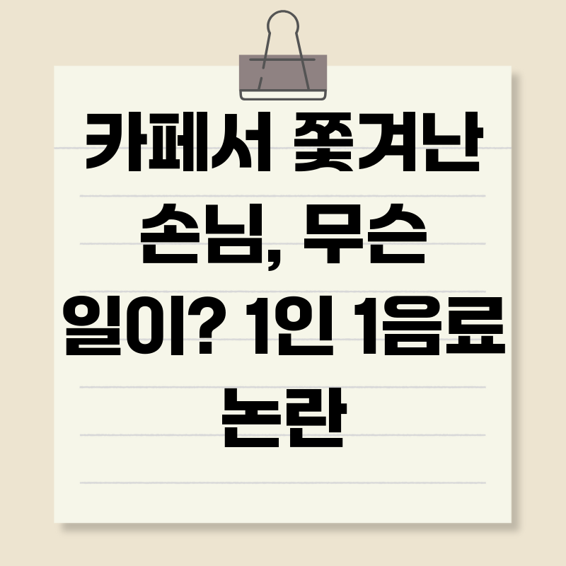 카페 1인 1음료 논쟁, 갑질인가? 합리적 운영인가?최근 카페에서 흔히 볼 수 있는 '1인 1음료' 주문 정책. 당연하게 여겨질 수도 있지만, 때로는 손님과 카페 간의 갈등을 야기하는 뜨거운 감자가 되기도 합니다. JTBC '사건반장'에서 보도된 한 카페의 사례는 이러한 논쟁에 불을 지폈습니다. 손님이 카페 규칙을 어겼다는 이유로 쫓겨나고, 심지어 소금까지 뿌려졌다는 충격적인 이야기는 과연 누구의 잘못일까요? 단순한 갑질일까요, 아니면 카페의 정당한 운영 방식일까요?1인 1음료, 왜 논란이 될까?'1인 1음료' 정책은 카페 운영의 효율성을 높이고, 테이블 회전율을 향상시키기 위한 일반적인 방법입니다. 하지만 모든 고객에게 획일적으로 적용될 때 예상치 못한 문제가 발생할 수 있습니다. 특히 어린아이를 동반..